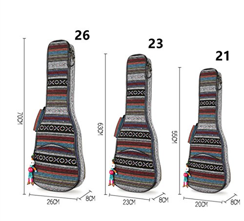 [ad_1] Ukuee fashion ukulele Waterproof Bohemian Style case and 10mm padded to protect your instrument, this thickness feels like a ukulele box. Invisible zipper pocket can accommodate many small accessories.23 inches Package size: Length 63cm * Width 23cm * Height 8cm (Concert) Waterproof nylon cloth and 12mm cushion to protect your instrument